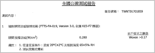 *紡拓會FTTS-FA-019 瞬間涼感紡織品標準